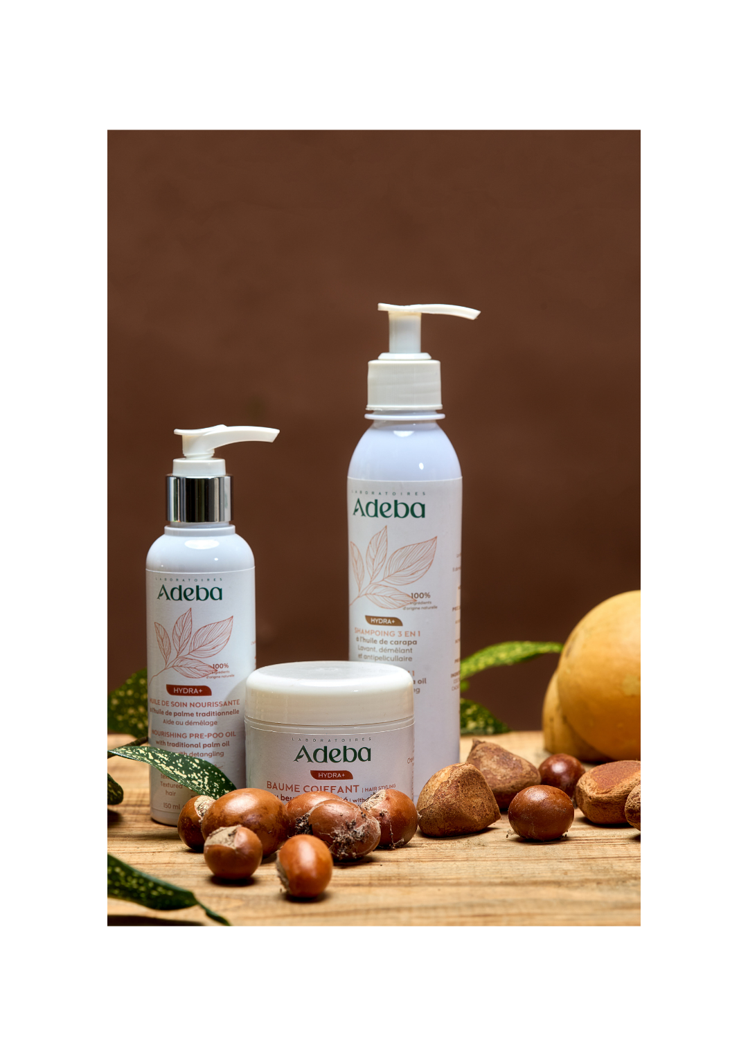 Keep It Simple Sista! A perfect combination for soft, silky and shiny hair composed of: A care oil: composed of palm oil, it is used in care to nourish the hair and give it shine. A 3 in 1 shampoo: Based on black soap, it fulfills three functions at the same time (it cleanses, detangles and fights against dandruff. A detangling and moisturizing balm: based on shea butter, it moisturizes and softens the hair.